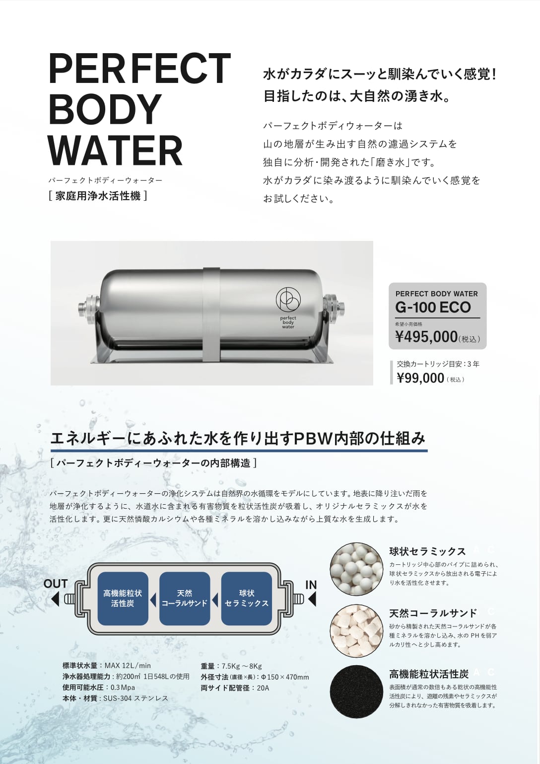 PERFECT BODY WATER G-100 ECO — 住まいのすべてを磨き水に変える