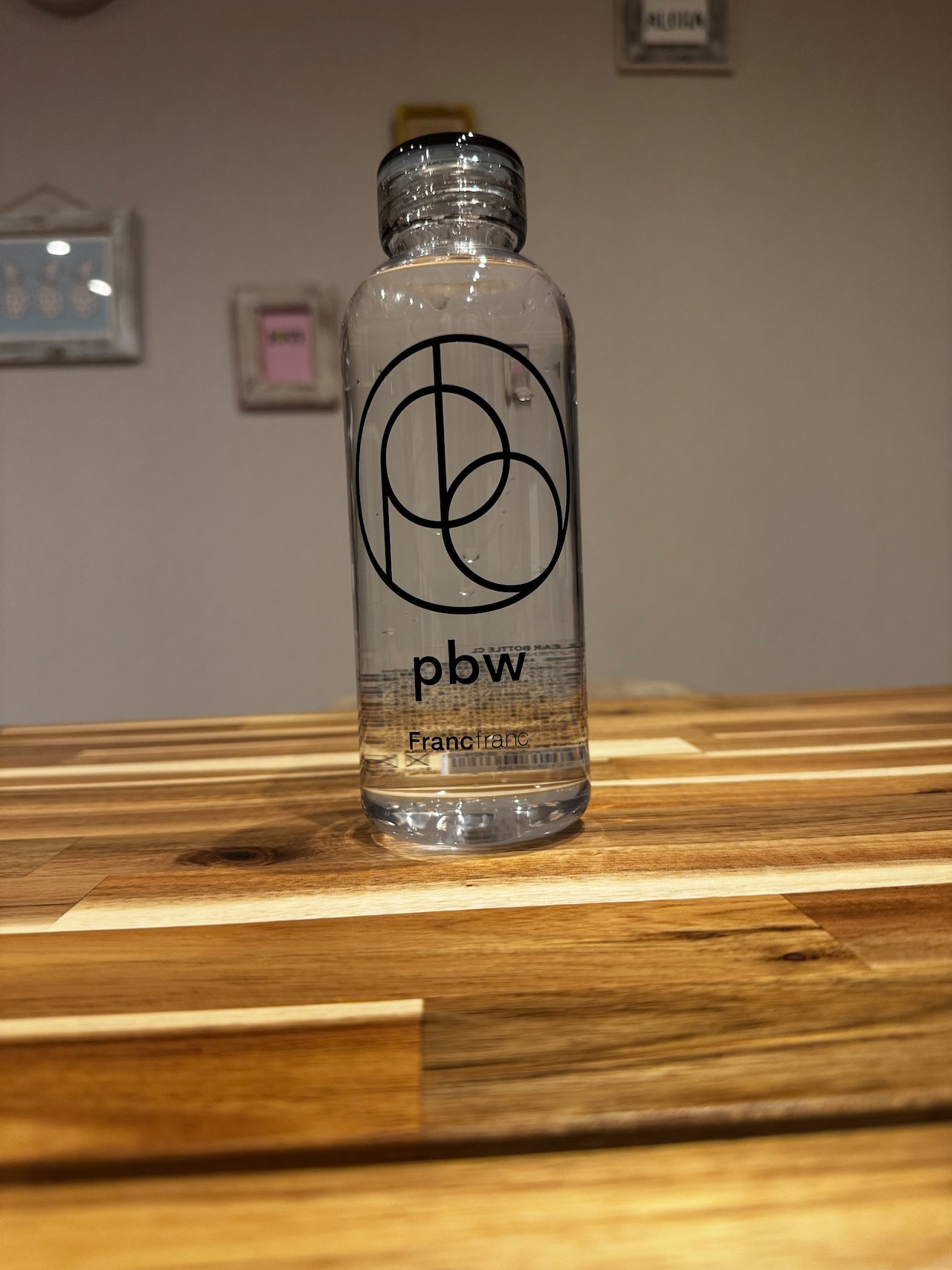 PBWのロゴステッカーを貼った、愛用者モデルのウォーターボトルです。
