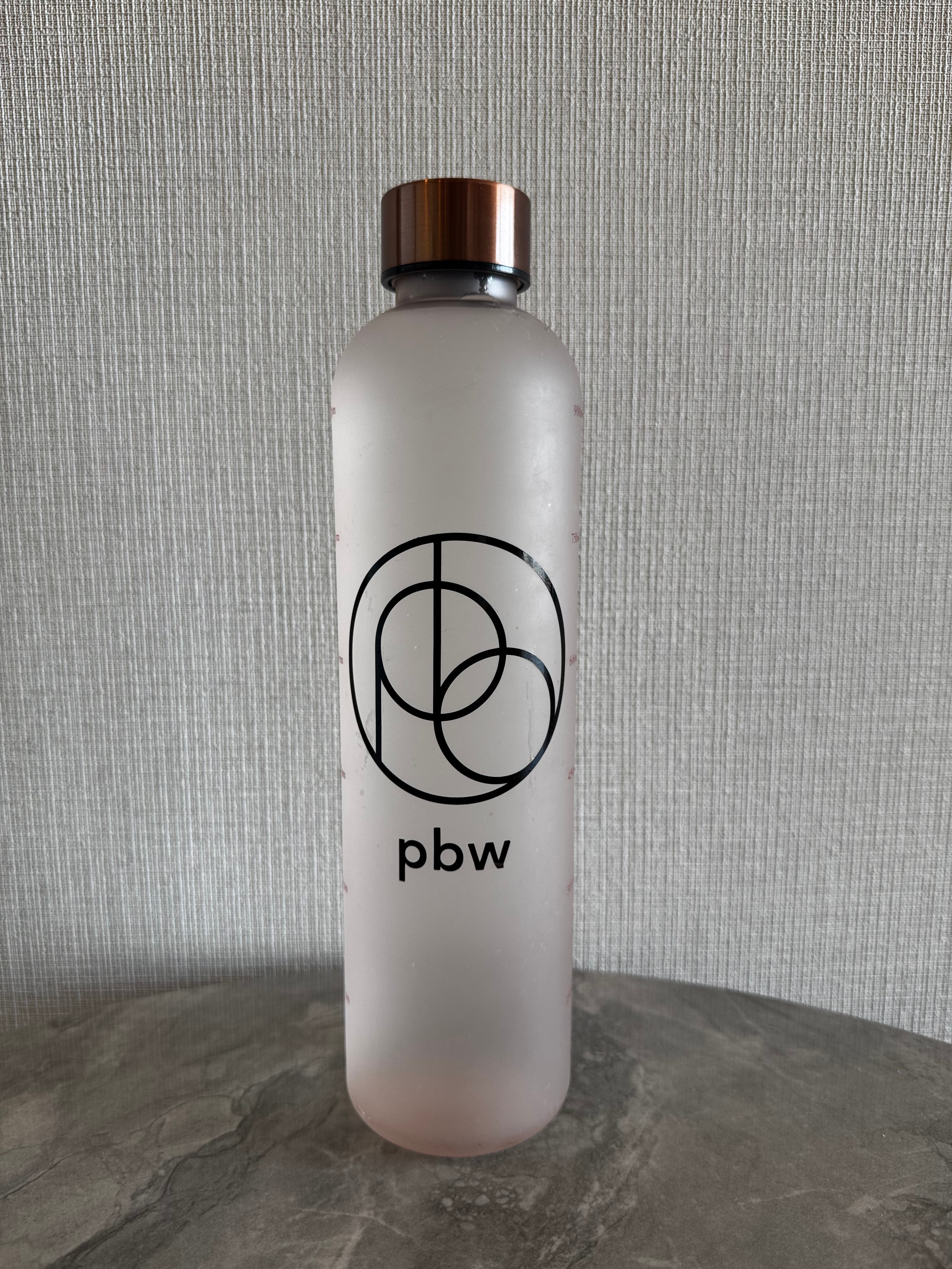 可愛いウォーターボトルにpbwロゴステッカーを貼ったpbw愛用者バージョンになります。